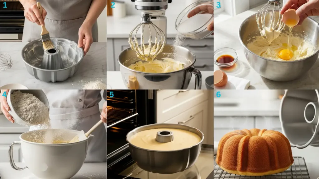 If you’ve ever had a pound cake turn out dry at the edges or gummy in the center, this recipe is built to avoid both. The mixing order matters, and so does the pan prep.