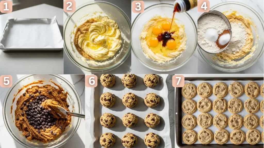 Another key factor is controlled mixing. The dough is mixed just until combined, which prevents excess gluten development and keeps the texture tender. Finally, chilling the dough before baking slows down spreading in the oven, ensuring that each cookie bakes up tall, rich, and gooey in the center.